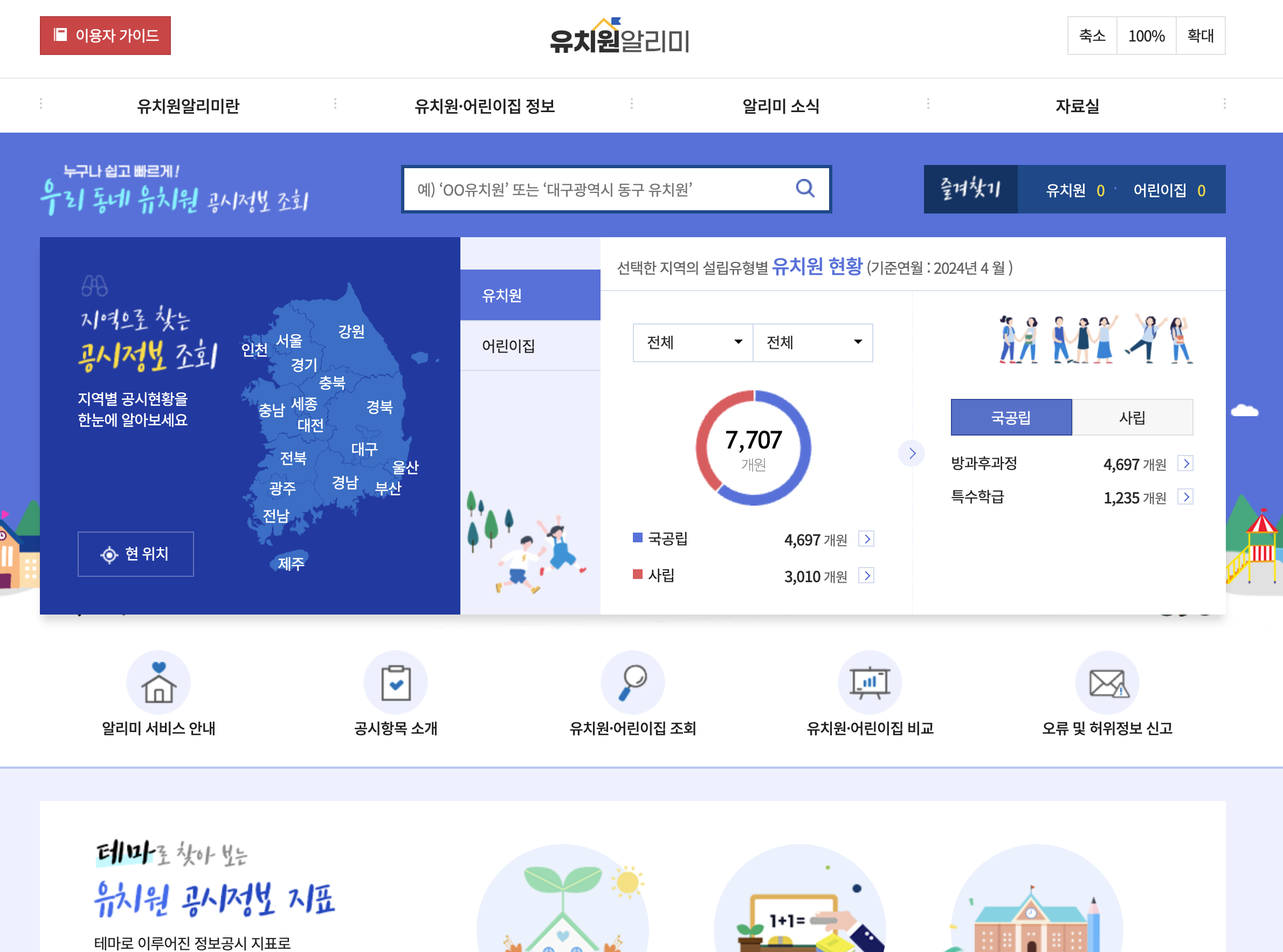 원래 개발 스터디 목적으로 시작한 프로젝트였지만 기획을 해가면서 실제 유입되는 사용자들에게 유의미하고 사용성 좋은 사이트로 만들고 싶은 욕심이 생겼다. 그런데 서치를 해보니 이미 교육부에서 운영하는 ‘유치원 알리미’라는 사이트가 있었고 데이터베이스도 훨씬 방대했다.