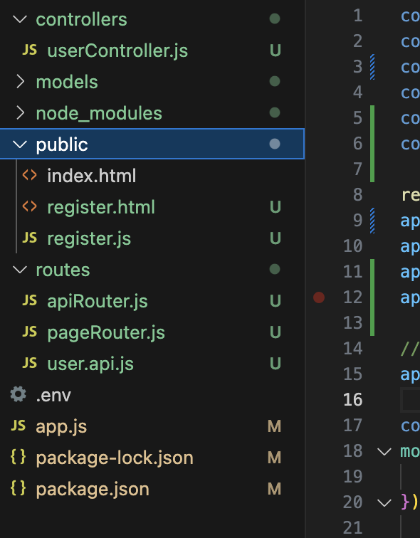 이 방식으로 진행하면 일단 프로젝트 내에 public이라는 폴더를 만들고 거기에 정적인 파일(html+css+js) 넣어서 관리한다.