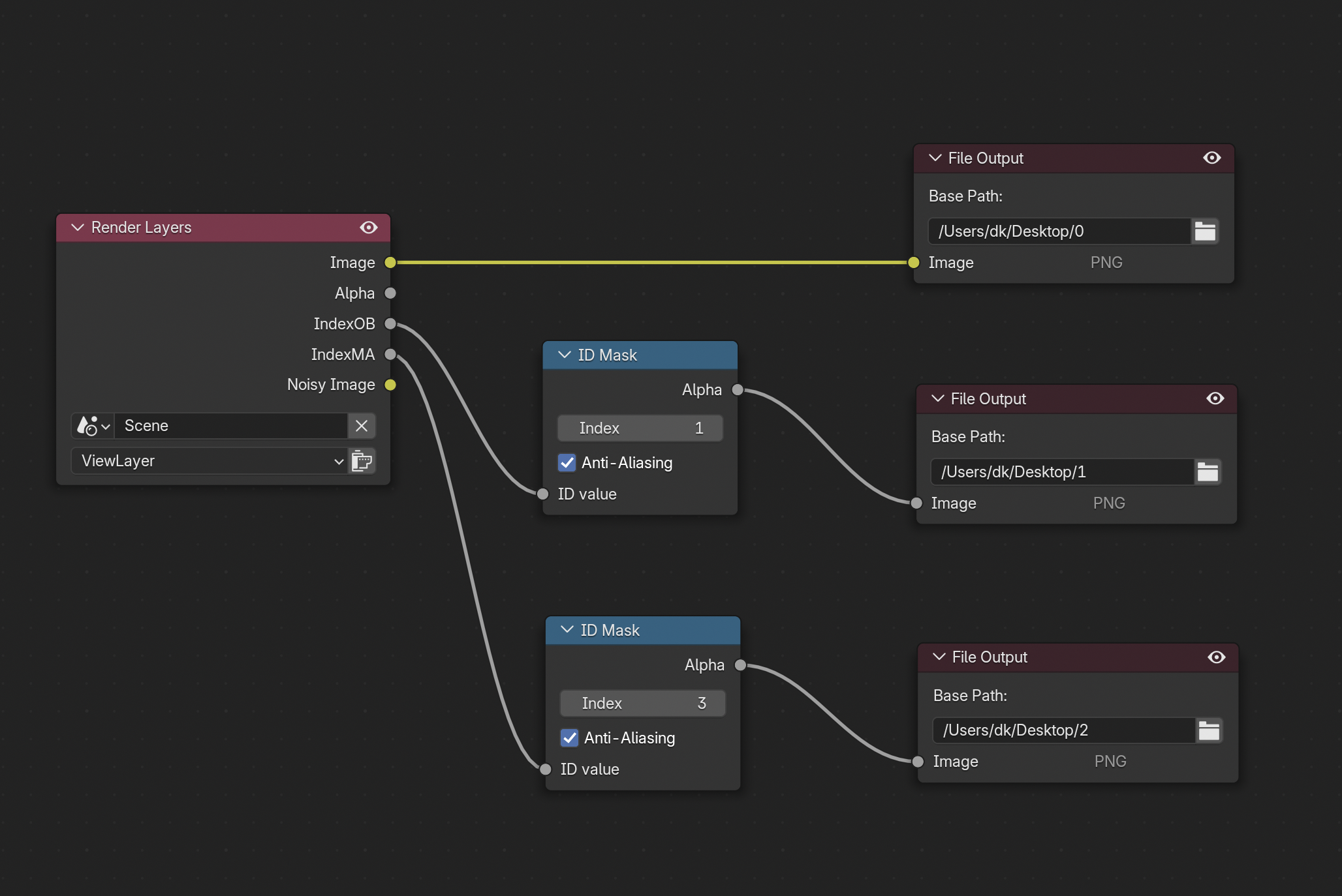 ID Mask라는 노드를 생성하고 인덱스 값을 지정해준다. (안티알리아싱도 체크)