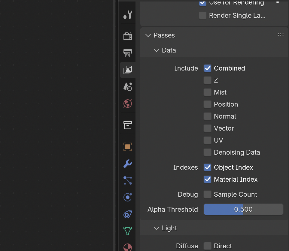 속성버튼들 중 Viewer Layer에서 Passes부분을 살펴보면 인덱스를 체크하는 곳이 있다.