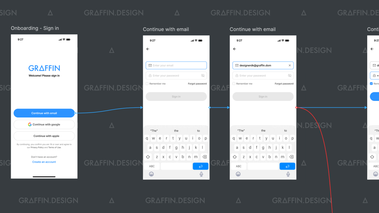 - Email Sign-In Flow: Email & password input with error states and validation handling
